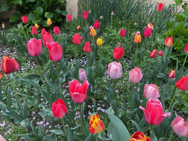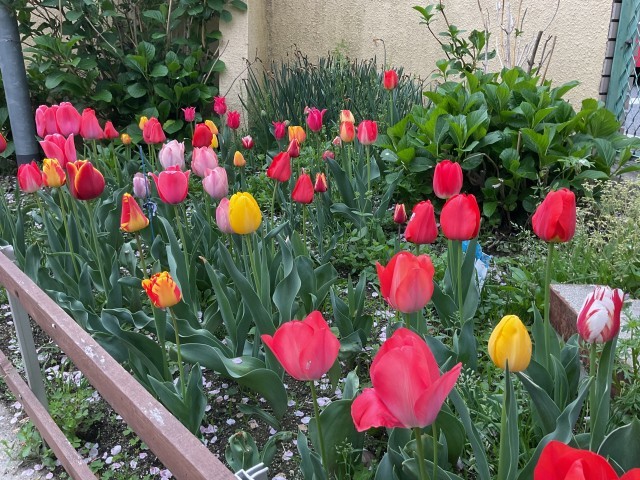 チューリップが、咲き誇っています。色とりどり、こちらも綺麗ですね。