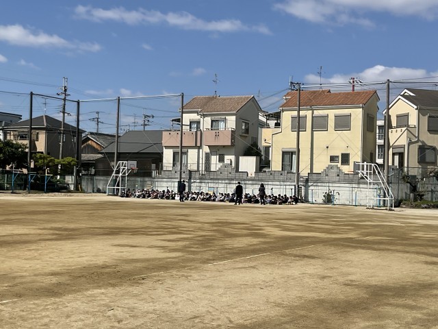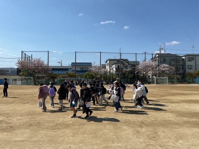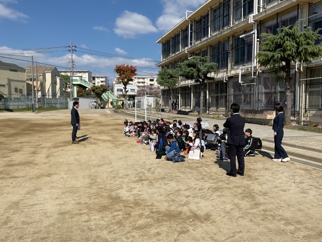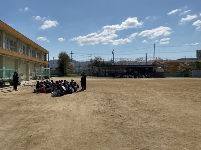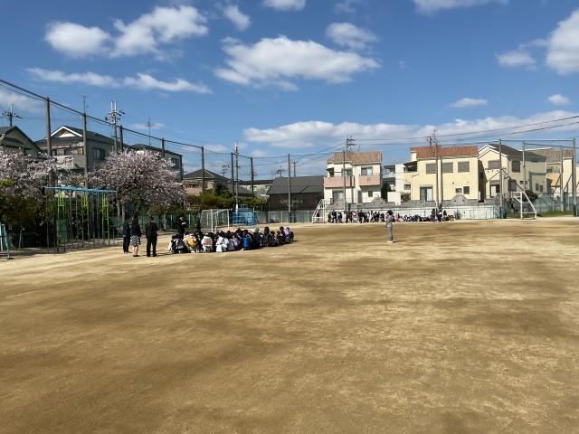 それぞれの学年に分かれて、先生からの話を聞き、クラス分けをしました。1年の始まりで、ドキドキワクワクの子どもたちでした。