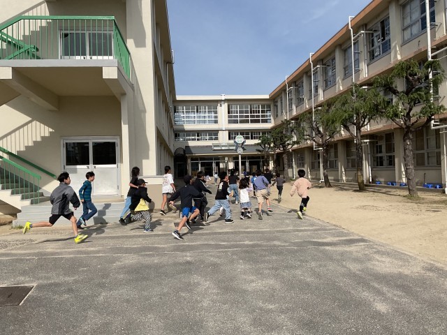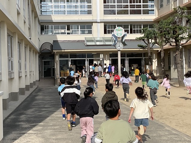 8時25分の予鈴がなると、駆け足で教室に戻る子どもたち。