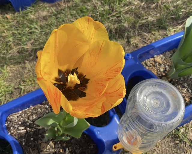 観察池にいるかめや金魚をみてほっこりする子や運動場で走りまわる子もいます。