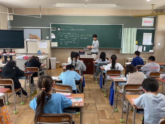 今日は、授業前の「オリエンテーション」です。「社会の授業では、どんなことを学ぶのかな?」