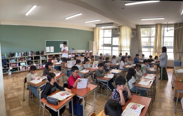 クラスを半分に分けて、歌い合う場面でも先生の指示を聞いて取り組んでいました。