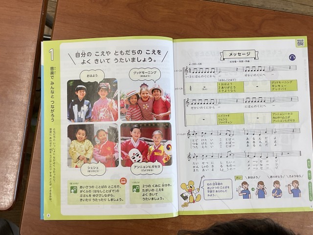色々な国の挨拶の言葉を歌に乗せて言ってみます。