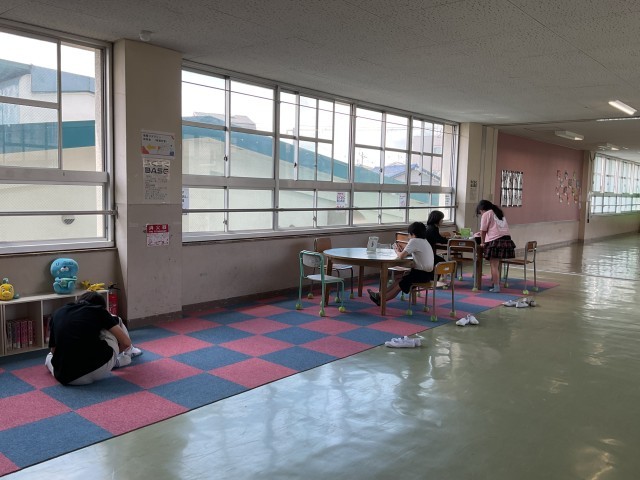 それぞれの場所で、お昼休みの時間を過ごしている子どもたち。