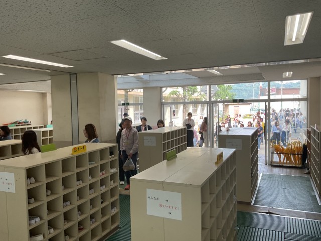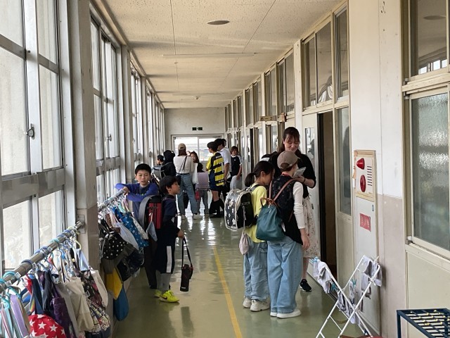 子どもたちが登校後、大雨警報等が発令されたことを想定しての「引き渡し訓練」を行いました。