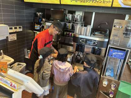 2年1組のみんなは、今日の2〜4時間目に生活科の学習の一環で、校区探検に「マクドナルド」に出かけました。マクドナルドでの店内の様子等を見学し、先生の注意事項等を守り、集団行動で現地に向かうことができました。