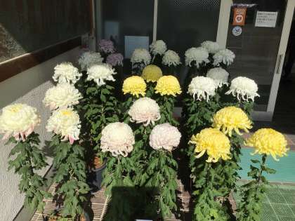 今年も枚方市菊花展や枚方市宿街道菊花祭に、学校で育てた大菊を出展しました。菊を担当してくれています山崎さんが親身になって、いつも世話をしてくださった菊鉢は今年も菊花展で「枚方市長賞」を受賞しました。その菊鉢がもどってきました。菊鉢の菊は職員玄関前で、とても美しく咲き誇っています。