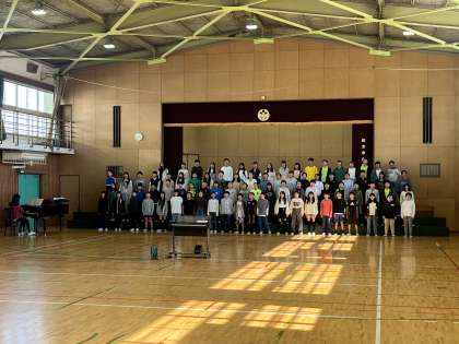 今日の4時間目の6年生は、明日の朝の児童集会での「修学旅行報告会」の練習に取り組んでいました。最高学年として小学校生活の集大成としての修学旅行の報告を明日に行うにあたり、みんな真剣に前日練習に臨んでいました。