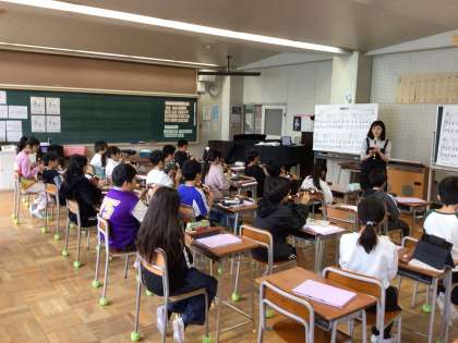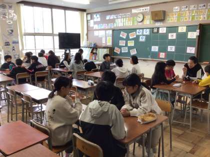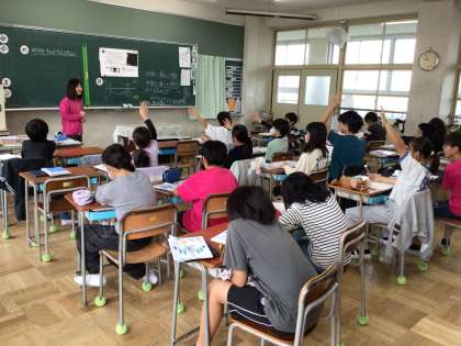 今日の5年生の授業の様子です。1組は外国語活動のの授業で、「Where is the post office?」の学習に取り組んでいました。2組は算数の授業で、「比べ方を考えよう」の学習で「時間を求める方法を考える」学習に取り組んでいました。3組は音楽の授業で、音楽室で「音色に気をつけて演奏しよう」をめあてに「威風堂々」をリコーダーで演奏していました。