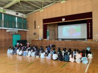 今日の3時間目、体育館で1年生が「交通安全教室」の授業がありました。「枚方交野...