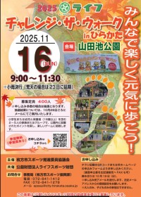 11月16日に行われるイベントです。詳しくは、こちらから。 → チャレンジ・ザ・ウォークin 枚方(表)(R7年度) →チャレンジ・ザ・ウォークin 枚方(裏)(R7年度)
