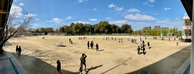 6年生の子どもたちが手前で遊んでいたのですが、そこへ2年生の子のボールがコロコロ転がってきました。