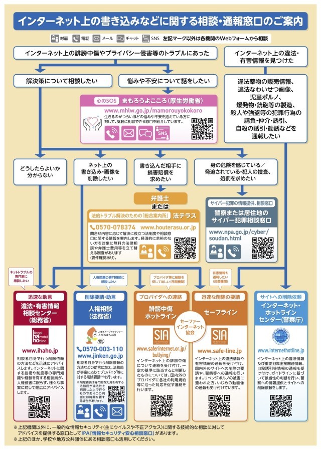 インターネット上の書き込みなどに関する相談・通報窓口のご案内(総務省)