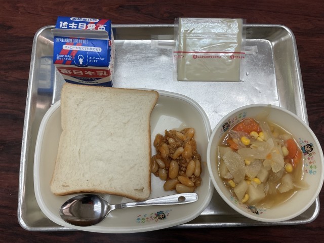 今日は、チーズとビーンズを食パンにはさみ込んで