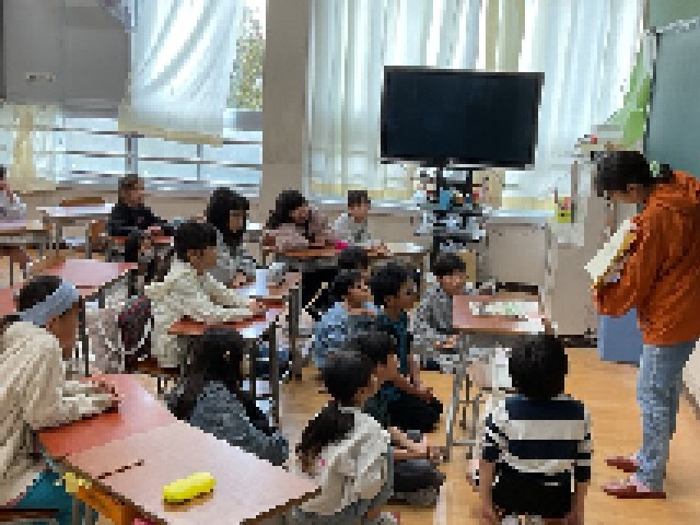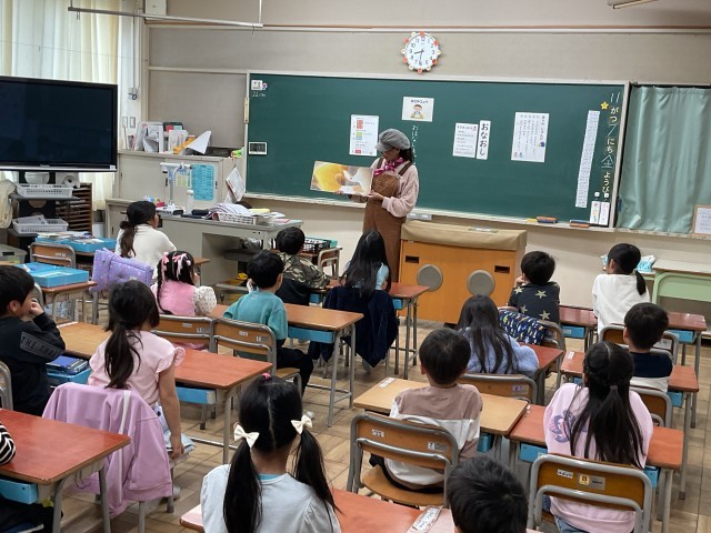 毎週金曜日、朝学習の時間に「お話キューピット」の皆さんが