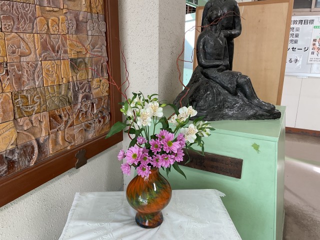 また、職員玄関の花、今月も地域の方が生けてくださいました。