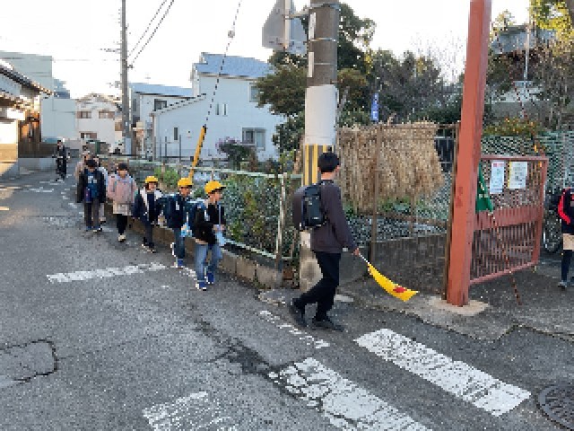 でも、子どもたち、班長さんを先頭にきっちり1列で並んで登校しています。