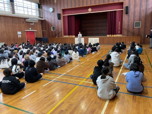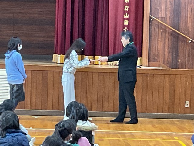 終業式の後、枚方市平和ポスター作品展の表彰を行いました。