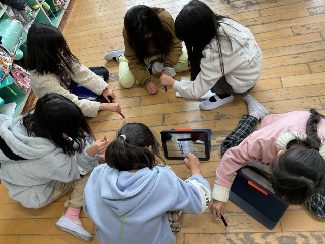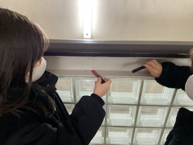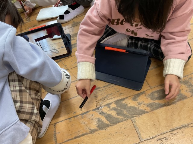 運動場や廊下、教室・・・色々なところを回って調べます。