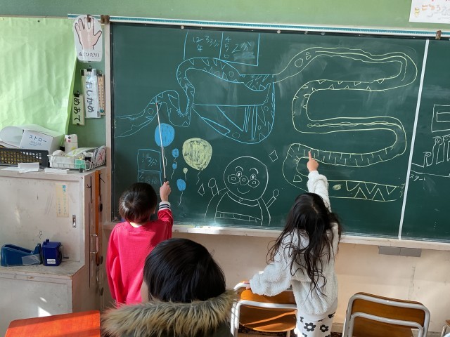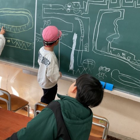 黒板の迷路、道からはみ出さずにゴールへたどり着けるでしょうか?