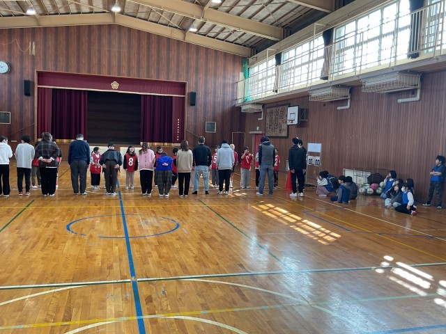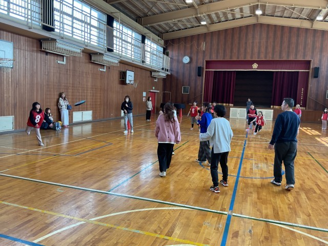 4年生は、体育館で親子フリスビードッジ大会でした。