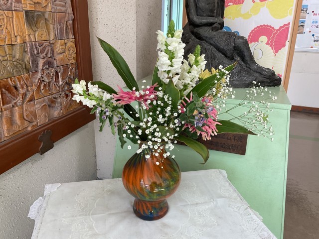 今月もきれいな花を地域の方が活けにきてくださいました。
