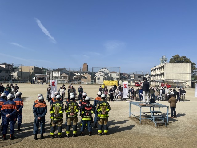 消防団による放水実演や起震車による地震体験、応急手当ての仕方など
