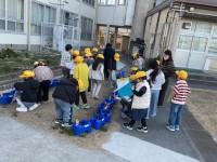 朝顔を育てるために、今日は鉢に土を入れ種をまいて肥料と水をあげました。みんなてきぱきと動いて上手にできました。