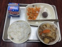 今日の献立は、ご飯、牛乳、雑煮、ぶりの照り焼き、黒豆 です。美味しくいただきました。
