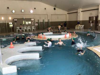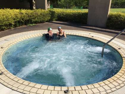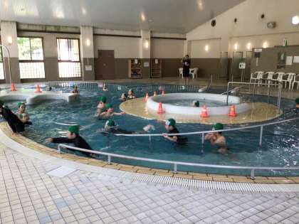 さかなつかみや川あそびびで冷えた体をバーデゾーン(温水プール)に入って温めました。