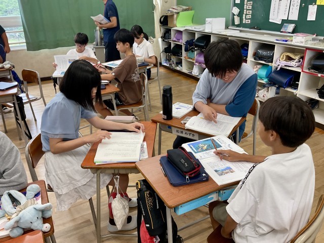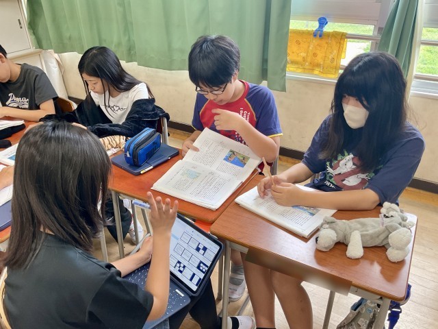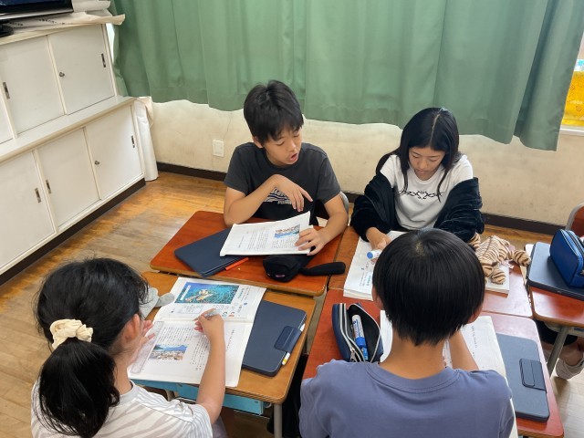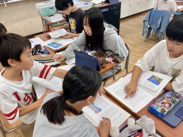 6年生の教室では、国語「『永遠のごみ』プラスチック」の学習をしていました。この日のめあては「筆者はどのようなことを伝えたいのか読み取ろう」でした。まずは、本文を序論・本論・結論にわけ、その上で「結論に書いてあること=筆者の言いたいこと」という学習の見通しをたて、取り組んでいました。