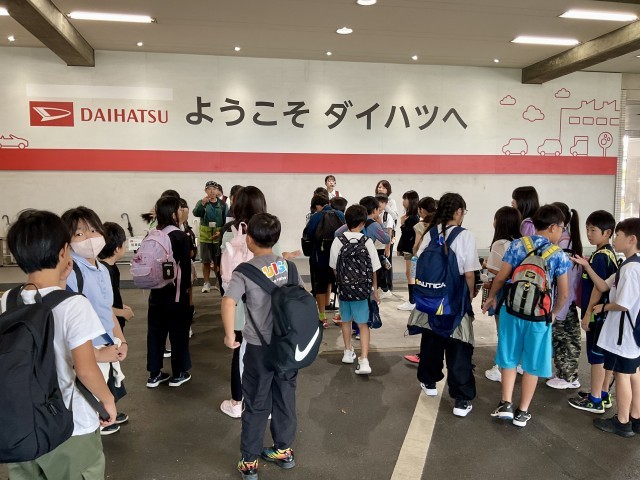 9:50 ダイハツ本社池田工場(ヒューモビリティワールド)に到着しました。今日、お世話になるアテンドの方にごあいさつをし、いよいよ見学が始まります。しっかり見て聞いて、たくさんのことを学びましょう♪