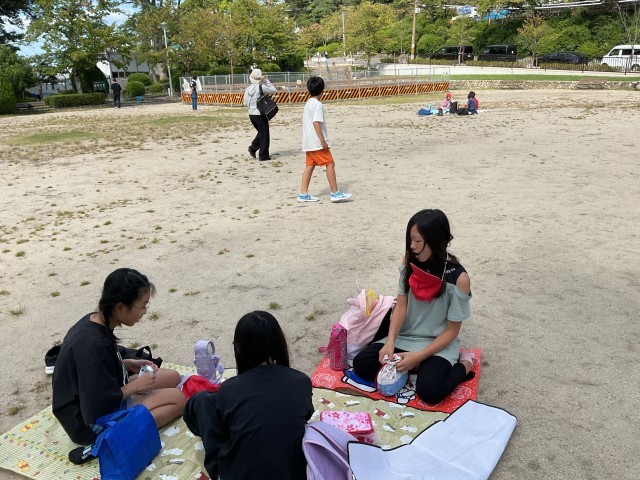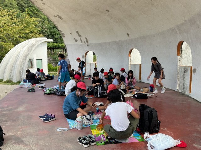 12:00 五月山公園に着きました。子どもたちはすっかりお腹のすいた様子で「いただきます!」のあいさつをしました。お弁当を広げ始めると「校長先生、見て♪」とうれしそうにお弁当を見せてくれましたが、どれも本当においしそう!私のお腹もどんどんすいてきました笑。朝早くからのご準備、本当にありがとうございました。
