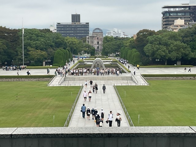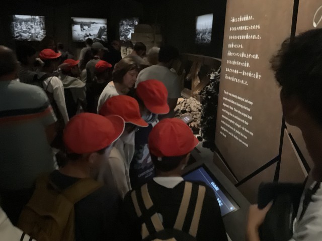 広島平和記念資料館の中では、たくさんの資料から多くのことを学ぼうと、真剣に取り組む姿がいろいろなところで見られました。これまでに学んだことと結びつけながら、考えている人もいました。あまりに凄惨な光景に、辛い気持ちになった人もいました。改めて平和の大切さを学ぶ時間になりました。