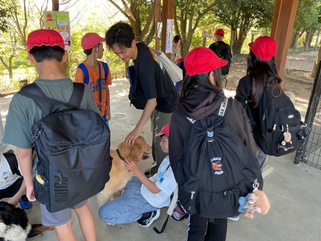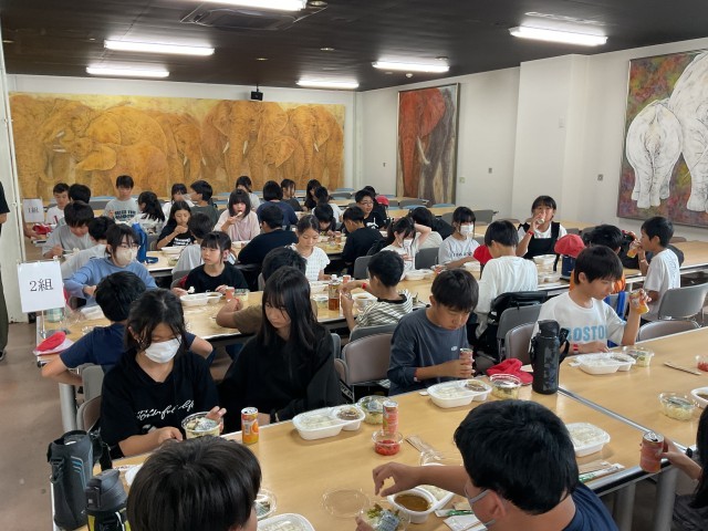 ウォーキングサファリで、野生の国の後にスカイサファリに乗って、ふれあいの国へ行きました。犬や羊など、たくさんの動物たちと触れ合うことができました。お昼になり、遊園地へ合流し、みんなでカレーライスを食べました。午後は、みんなで遊園地で遊びます♪