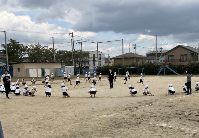 運動場では、1・2年生が合同で運動会の練習をしていました。団体競技の並び方や競技、ダンスの練習をしていました。もちろん当日のお楽しみにしていただきたいので、詳しくは語りませんが、笑顔で取り組む様子は「かわいい!」の一言に尽きます。間違いないです。