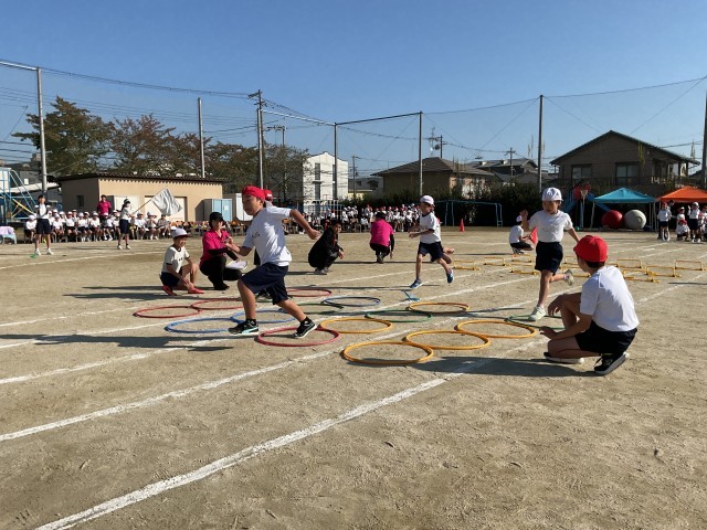 レベル100ってどれだけのピンチだ?と心配しましたが、子どもたちにとっては関係ない!とばかりにスイスイとミニハードルをこえ、けんけんぱをし、あみをくぐってポーーーズ!ポーズをしっかりキメているところが素敵でした。