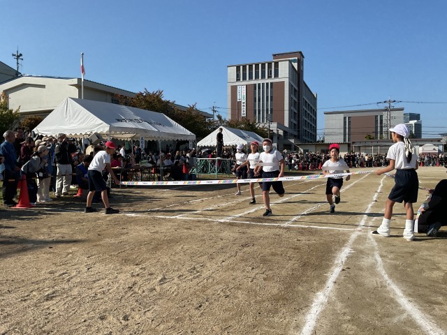 5年生は高学年なだけあって、走競技の距離もグッとのびて100m。力いっぱい走る姿は、とても迫力がありました。最初の撃たれた4人のパフォーマンスも完璧でしたね笑。最後の最後まで諦めずに走るのが、5年生のとっても良いところだなと、うれしくなりました。