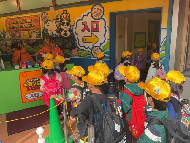 チャージしながら迷路の中を移動して、ゴールできたらカードバトルをしました。初めてではない子どもたちも多く、慣れたものでとっても楽しそうでした。(もらったカードは今日のおみやげです。)