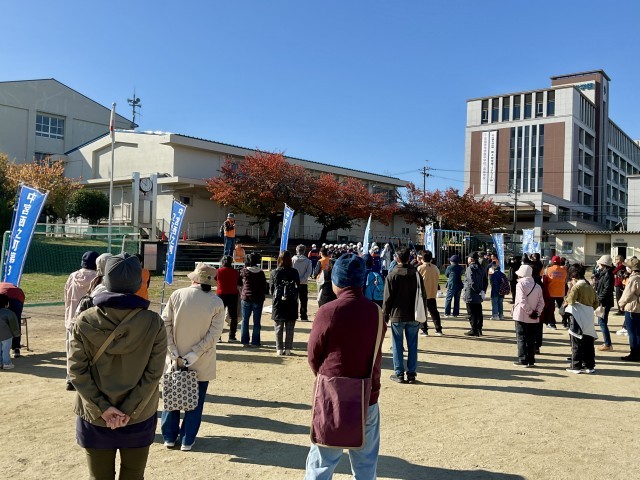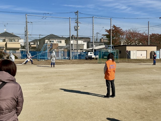ぽかぽか陽気の今日、校区自主防災会主催の明倫校区自主防災訓練が行われました。およそ100名の地域の方々が参加され、枚方消防団や地域活動支援センター、枚方市役所の方々のご協力のもと、さまざまな訓練をしました。