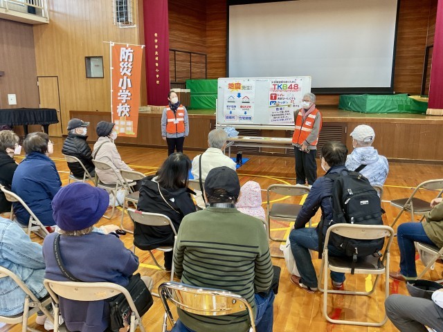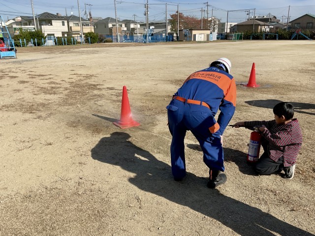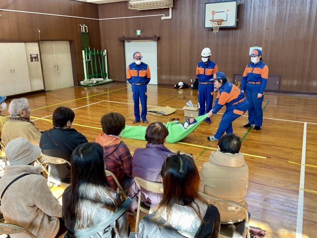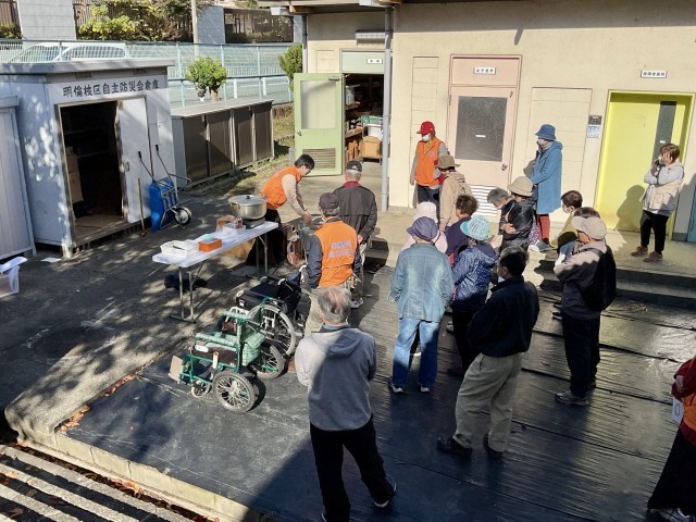 消火訓練や応急手当訓練、防災クイズや防災倉庫の物品にまつわる説明会など、4つのグループにわかれて体験した後、みんなでα米カレーを食べました。災害に備え(これから火災が増える季節です。要注意!)、地域の防災について改めて考えることができました。ありがとうございました。