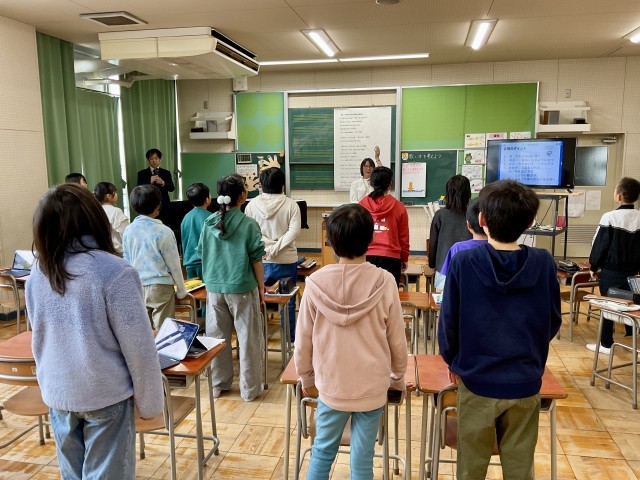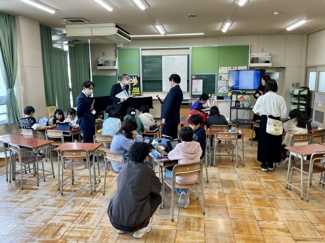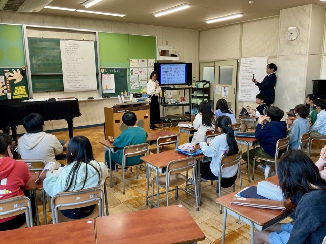 5年生の音楽の学習を参観しました。今日の授業は、明倫小学校の先生たちの他に、枚方市教育委員会の4名の先生方にも参観していただきました。今日の授業は、卒業式に歌う曲について、自分たちの思いをどう表現して届けるのかについて考える授業でした。