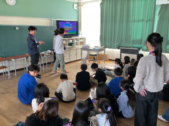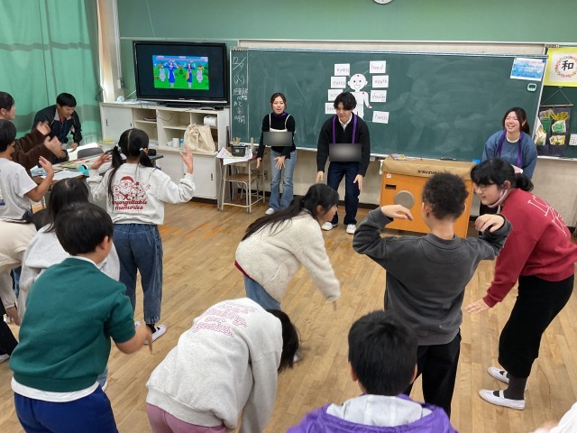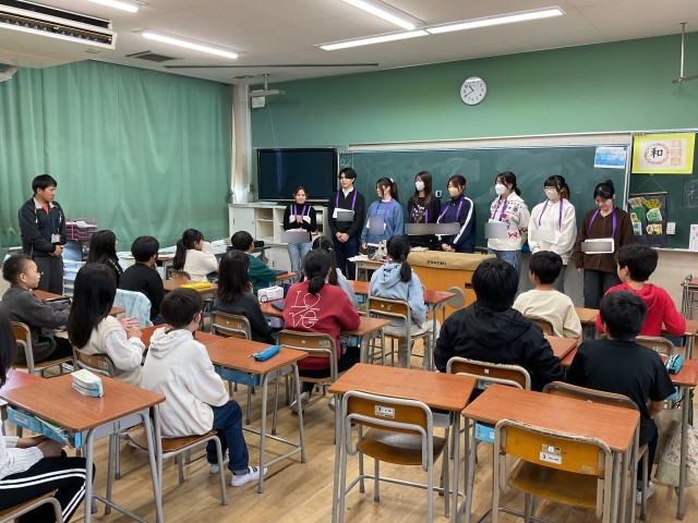 これまで、「9月30日(火) 関西外国語大学の学生が明倫小学校へ」や「10月28日(火) 教員の仕事を主体的に学ぶ」で本校に訪問されていた、関西外国語大学の1年生のみなさんが、5年生の授業を計画・準備し、今日の3時間目に行ってくれました。