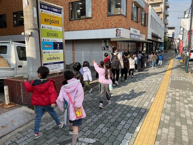 3、4時間目にまち探検で宮之阪商店街に行きました。