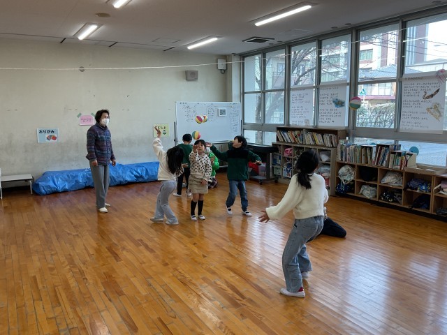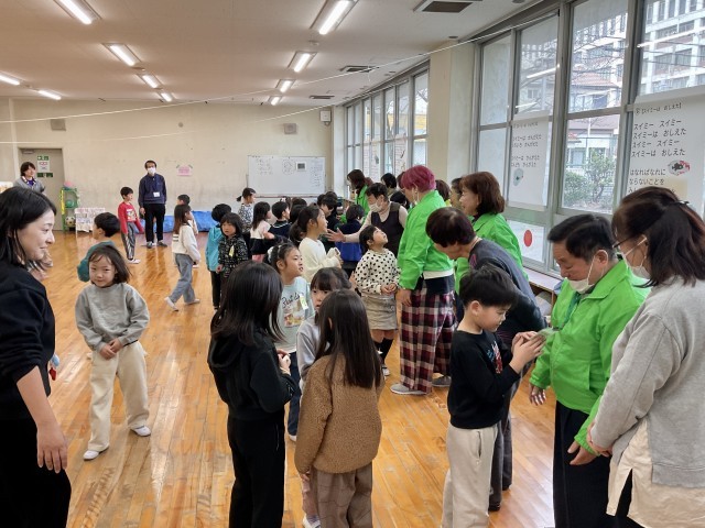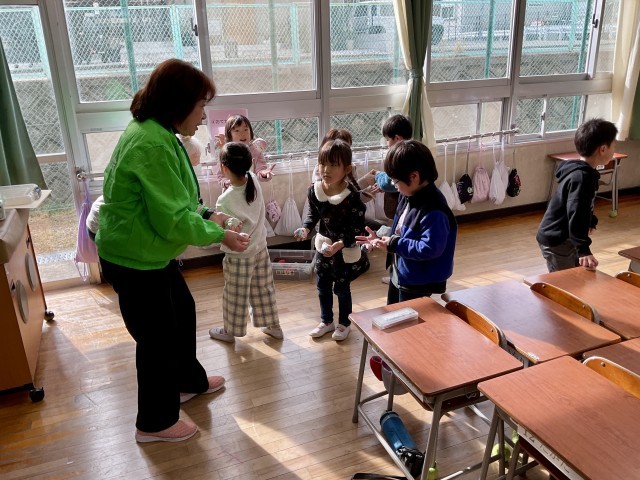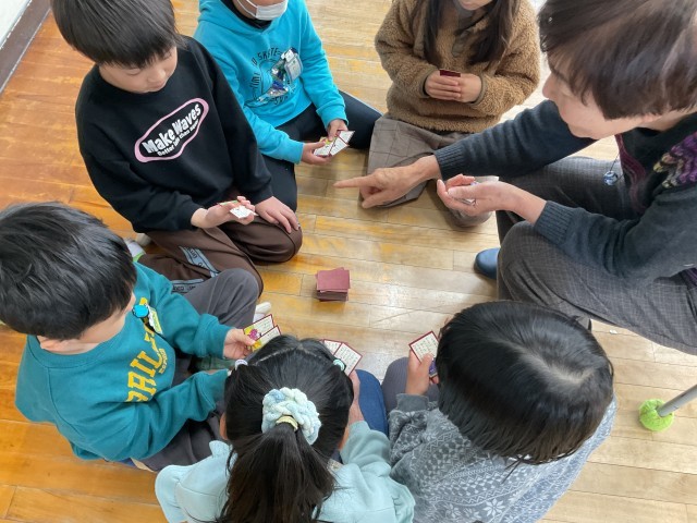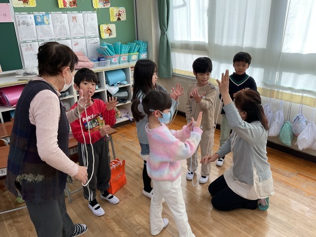 今日は、1年生の生活科の学習で、福祉委員会や更生保護女性会の方々など地域のみなさんをお招きして昔遊びの交流を行いました。コマ回し・けん玉・紙風船・紙飛行機・お手玉・あやとり・だるま落とし・坊主めくりの8つのグループに分かれ、ローテーションしながら昔遊びを楽しみました。初めて触れる遊びもあり、苦戦しながらも地域の方に教わりながら、何度も挑戦するキラキラした子どもたちの姿がありました。 最後、オープンに集まって感想を発表する時に、1年生がたくさん手を挙げていて、担任の先生もあてるのに困っていました笑。「〇〇ができるようになって、うれしかった。」「家で弟に教えてあげたい。」「楽しかった!」など感想がたくさんありました。そこで伝えられなかった子どもたちも、地域のみなさんが帰られる前に直接伝えに行っていました。子どもたちの健やかな成長のために、力を貸していただき、本当にありがとうございました。