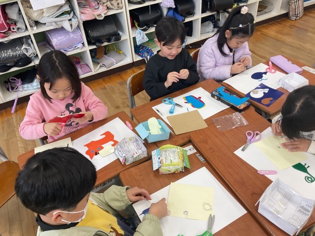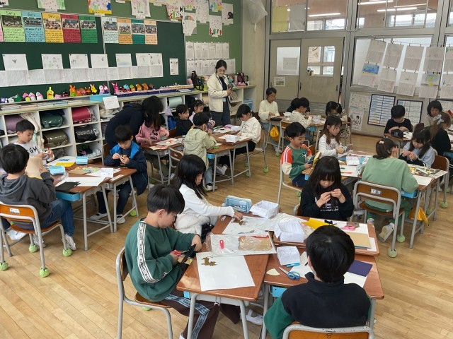 子どもたちは、友だちと時に楽しそうに、時に真剣に取り組んでいました。途中、私が教室に入ると、自分の作っている動物を一生懸命説明する子もいれば、脇目も振らず集中する子もいました。どんな作品に仕上がるのか、完成が楽しみです。