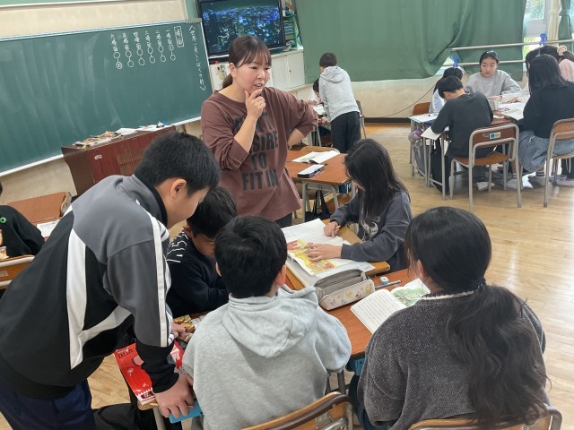 4年生の教室では国語の学習をしていました。教材の名前は「世界一美しい僕の村」です。今日は、お話のまとまりを理解するために、物語の場面分けをしていました。