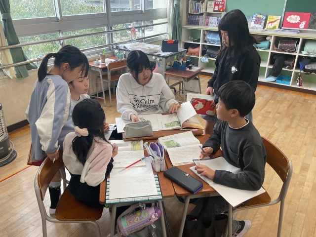 子どもたちは、当たり前のように1人で考える、友だちと考えると言うように、自分で学び方を選択しています。自分の考えを友だちに聞いてもらったり、友だちの考えを聞いたりすることで、より学びを深めています。子どもたちは、とても集中して話し合いに臨んでいました。