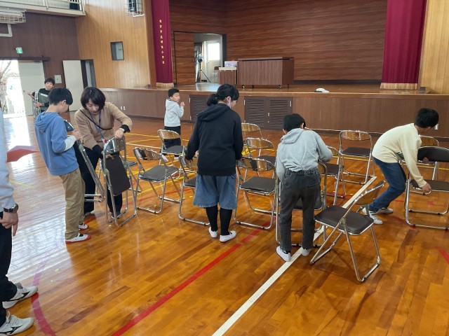 今日の2時間目に5年生が、卒業式に向けて体育館の式場を準備しました。いよいよ今日から、卒業式に向けての練習が始まります。毎年、式場の準備は5年生がしています。