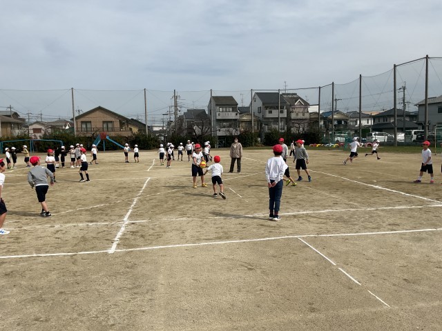 内野も外野も声をかけたり、走り回ったりしながら、思い切り体を動かして取り組んでいました。3年生になると、投げるボールの速さもぐんと速くなりますが、キャッチもとても上手なので、ゲームの展開も早く、見ていてとても楽しかったです。